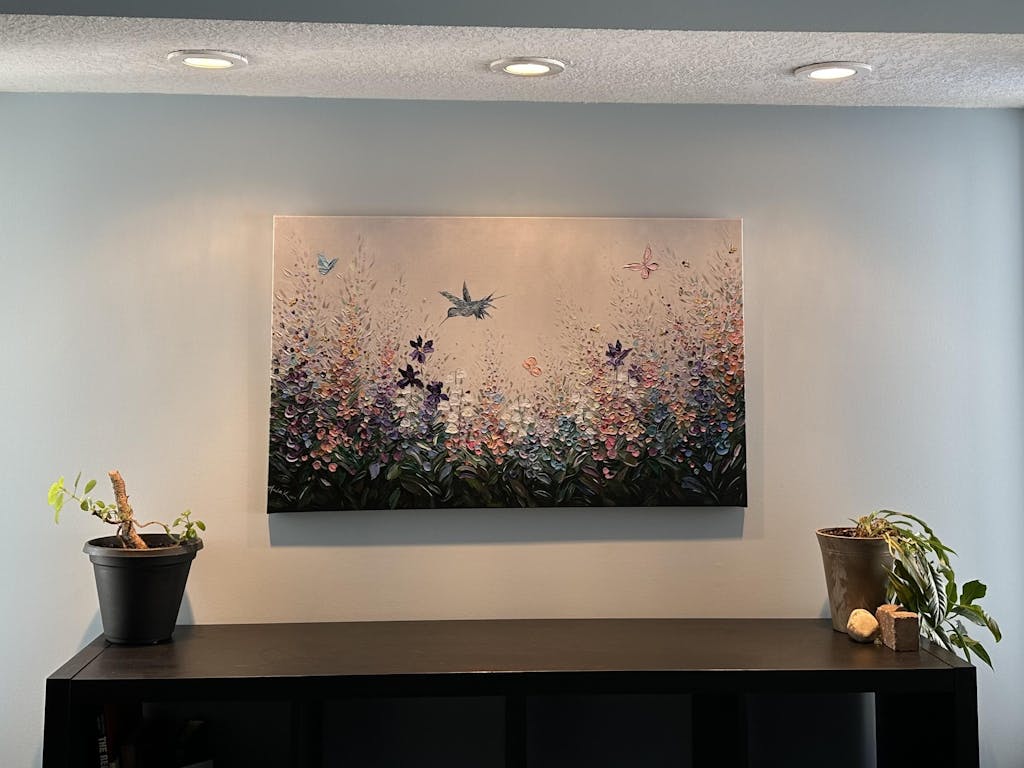 I had been eyeing this print online for about a year before we moved into our new house and I found the perfect spot for it and made the purchase. The texture comes through in the prints very well and you can hardly tell it is a print when looking at it. It is even better in person and I couldn't be happier with the purchase!